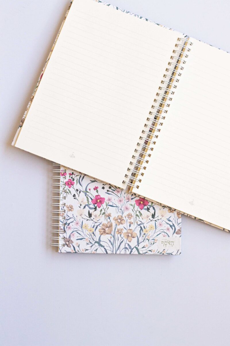 מחפשת מחברת לכתוב בה רעיונות? סיכומים? תכנונים? ושתהיה יפה ומיוחדת? מחברת ספירלה בגודל A5. עם איור מלא השראה ואור. כריכת פאטרן פרחוני מרגש מודפס על נייר דמוי בד.